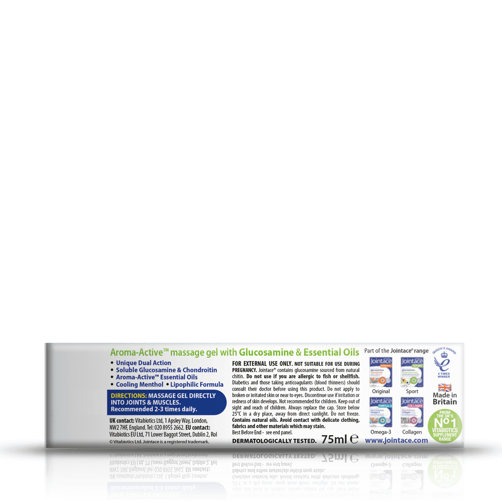 Aromatherapy isn’t all you’ll find in Jointace Gel. We’ve blended a range of essential oils with high quality Glucosamine and Chondroitin, all in one massage gel.